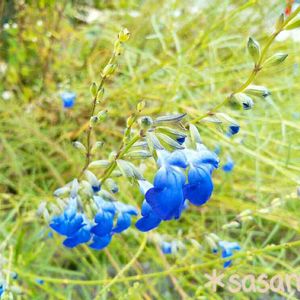コバルトセージ この花が沢山つき始めると 秋になったなぁ~って感じます この花が沢山つき始めると この辺りは稲刈りの頃で 静かで、鳥や虫の声しか聞こえない日常が 何処かしらでコンバインの音もプラスされています こんな風に 季節の移ろいを感じられるのも良いことなんだなぁ