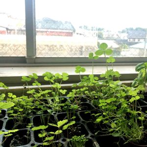 窓辺でハーブが育ってます。 植物にはいい気温! 多分、気持ちいんでしょうね!