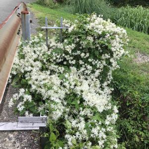 川の側から伸びてるセンニンソウの花 私が草刈りする川土手ですがあまりの綺麗さで刈るのはもったいないから置いています 台風にも負けないで咲き続けています😊