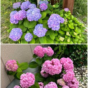 霧島の恵💖が最高に色付いたので 記録に残しますね🤗 青と赤の咲き分け 今年はこうなりました(^-^)v どうしてもウチの庭は ブルー🩵にするのが難しい(毎度お馴染みですね)😅 でもこうやって画像で比べると 違いは有るかと・・・? 画像④⑤はカシワバアジサイ・スノーフレーク💖 こちらも毎度の如く徐々に花が垂れていきます😓 麻紐でオベリスクに吊るようにして何とか保っています(画像⑤)
