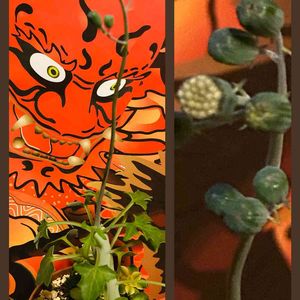 こんばんは(^O^☆♪ 今は5度、夜中は2度予報です💦 時間遅くなって暗いねぇ…。 ピントもズレてるネ |ू・ω・` )sO°˚˚ºɾɾÿ 3月に ももチャンからいただき苗🌱の 七宝樹(しっぽうじゅ) キク科セネシオ属 我が家に来た時は、指の先っちょ位の大きさが 今は、こんなにスラ〜っと⬅️育って ➡️花芽がついていますよ💚 マイナス1~2℃まで耐え、霜にあててもOK! クリスマス🎄飾りを片付けて、 お正月の🪁凧の前で撮ってみました✌️ こわ〜い顔がにらんでいます…… :( ૃᵒ̴̶̷᷄⌑ ᵒ̴̶̷᷅ ૃ )⁝ 食べないでね! ピッタリの🏷みっけ💁♀️ ニョロン(26日)の日 お初お借りします💚