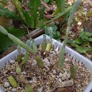 七宝樹ニョロニョロに葉っぱが生えた感じ💚 地下茎からも増え、子孫繁栄多肉🎶 フシで挿し木でも増やせ、多肉寄せに入れると面白い💚