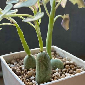 美味しそうな蕪が出来ました…😸🍴💕 じゃなかった これはセネシオ・七宝樹さんの子株ちゃん達です😻💜💚💙 植え替えしてたら コロンっと2つ転がり出てきました😸➿ 1号(3cm)のミニ植木鉢に収まる超ミニサイズの可愛らしさです😸💘