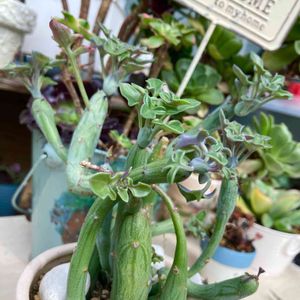 おはようございます 明日から寒くなるらしいです❄️ 今朝のpic 🏷棒の日 『七宝樹』セネシオ属で参加します🌵 ↗️親株 以前春日井の🌵専門店に行った時隅っこでボーボーしてた七宝樹を👀発見不恰好だったけど連れて帰り葉挿し?して増やしましたぁ💦 🥒キュウリのような茎が節で繋がりレンコンの様で三角矢の葉っぱがチョロチョロ可愛いんです💕 節で✂️して挿すだけでどんどん増える しっかり根付いて丈夫いです٩( 'ω' )و 理想は🍡の様にコロコロまん丸の七宝樹なんですが、中々そうはいかず 🥒になってしまいます🤣 いつかこの中から🍡現れるのを期待🤗 hava a nice day…✨