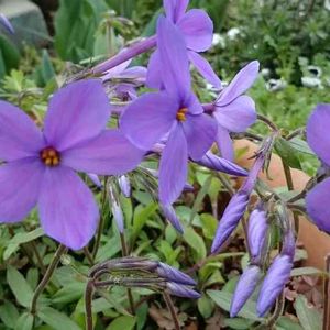 おはようございます☀ 今日は風も止み暖かくなっています 昨日の風の被害はないかお庭パトロールしましたが、鉢がひとつ倒れていたくらいで大丈夫でした。 薔薇の新芽も風に揺さぶられどうなることかヒヤヒヤでしたがこちらも大丈夫そう🙆♀️ 花壇のフロックス ストロニフェラさん✨ 咲き進みお洒落な雰囲気💕 淡いスカイブルーが素敵です 和名 ツルハナシノブ