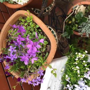 まず朝から、早くこのバンキングプランターに植えたくて底に穴開けて、居場所も決定したよ🍀 久っ々にこのベランダ左側の場所を整理して飾ってあげた!結構日が当たるしいい場所✨☺️垂れ下がる感じ好き過ぎる💕 お花まだ咲いてなくてもいい感じ! ブルーのお花が咲くのも楽しみ♪