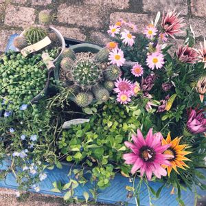 こないだ、久々緑化センターにて大量買いしちゃったの❤ 12苗で600円✨多品種なガザニア,アメリカンブルー,マーガレット,お値下げ品のネモフィラ(再チャレンジ!)グリネは可愛いポット付きに惚れて♡サボさん大¥200,中¥100✨沢山の子が着いてたのと、多肉ちゃん(セイロンベンケイ 子宝草)が一緒になってたもんで😁 満足満足(*´︶`*)お天気悪いんで少しずつ移植…♪♪♪