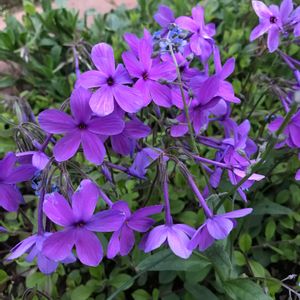 💙青い花マニア5000pic達成💙 おめでとうございます🎉✨ これからも宜しくお願いします😘 ツルハナシノブ💜 這性宿根フロックス 昔、実家に咲いてた背が高くて花がたくさん集まるタイプとは違って、あちこちに蔓を伸ばしどんどん増えるけど、背も低めの20cm程度の控えめな子💜 これからどんどん咲きますよ〜🤗✨(ちょっと増えすぎるけどね😅) ※投稿後にMr.マーさんが知らせてくれたので、編集して㊗️コメントと🏷つけさせていただきました😅💦