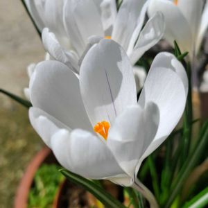 初めて🔰育てるお花 クロッカスをお迎えしました🤍 白い花びらにオレンジ色の蕊、 うっすら入るムラサキのライン😆 美人さんです😍 ④は現在の姿 今朝は久しぶりに朝から冷えてます🥶 天気も下り坂でどんより... このコはお日さまが差さないと開かないようですね😊 ①~③昨日のうちに🤳撮っておいて良かった😁 オステオスペルマム アキラ HC でみつけました😄 たくさん並んだアキラのポットの中で このコだけがスプーン🥄咲き😲 1輪だけかなぁ🙄 2輪目からの開花に注目です🤗