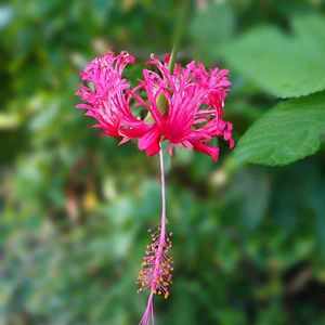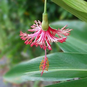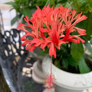 🍀レッドスパイダーハイビスカス🍀 風鈴仏桑華‼️ 目の前にぶら下がる赤いお花❣ えっ⁉これってハイビスカス💕 長いシベが可憐で可愛いです😊