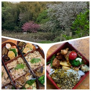 🌸ガーデンで花見🌸 3年前材木置き場の小屋 (夫高齢になり、建築業廃業) 桜の存在が? 何とこの季節のみ、見られることに 気がつく❤️ 畑仕事、花育てとそれぞれ 毎日元気でいられることが感謝です。 畑で、採れる野菜等で、 春の良い季節のみ、 お弁当作り毎日、ハイキング気分で 楽しく、身体を動かしています。 コロナ中から知り合いが次から次へと 訪問あり。