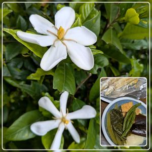 オハこんにちは(*^^*) 今日は朝から雨かと思いきや、昼までは大丈夫そう♬♬♬ 昨日投稿したいんげん豆、夕飯の煮物へ。 彩りバッチリ(*^ー゚)b クッ゙ 残りは今朝のお味噌汁に。 採りたてのお豆さん、風味が良くて美味しかった〜^_^ お花は、お隣さんで咲いていたクチナシです。 【クチナシ】 アカネ科クチナシ属 日本では静岡県以西・四国・九州・南西諸島の森林に自生する。 園芸用では、庭先や鉢植えではよく見られる。 花期は6〜7月。芳香をもつ花を咲かせる。 開花当初は白色、徐々に黄色がかる。 果期は秋。赤黄色で、側面に5〜7本の稜が突き出ており、先端には6個の萼片が残り、開裂しないまま針状に付く。 八重咲きの品種は、実はならない。 和名クチナシの語源には諸説ある。 ①果実が熟しても裂開しないので、口が無い実の意味から「口無し」という説。 ②上部に残る萼片を口、細かい種子のある果実を梨とし、口のある梨の意味から「口梨」という説。 果実は薬用、着色料、 花は食用、香水の原料になる。