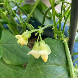 おはようございます♥️ 昨日今日は今月唯一の連休✨ 昨日、寄せ植え①号がラッピング付きで嫁に行ったと報告がありました😆 良かった良かった💕 さて、テラスのつるなしインゲン ようやく花を咲かせて赤ちゃんインゲンの姿を確認できました🙌 頑張れ頑張れ