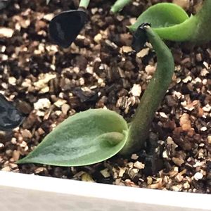 4/3に播種したイシスメンシス。 LEDと保温マット(夜でも室温が20℃を超えるときは加温せず)で、6日目から発芽し、ゆっくりと10粒中7粒発芽。 1か月目はフードコンテナ内で霧吹き&腰水、その後はトレーの上で霧吹き、たまに腰水。 早い子は2枚目の本葉を見せている( ・ㅂ・)و ̑̑