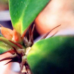 こんにちは🔅🔆 ユーホルビア ミリー アトラスと🏷が付いていました このお花はハナキリンだとGSで学習済み (゚ー゚)(。_。)ウンウン 本当は赤が欲しかったけど白しかなかったのでお迎えしました 植え替えようとして な なんとなんと∑(๑º口º๑)!! ハナキリンてトゲトゲなんですね 全然学習できてないやん(´•ω•`๑) その上白い樹液に触れると被れるとか (>_<) もっと調べてからにすれば良かった 完全防備で育てます (p`・ω・´q)