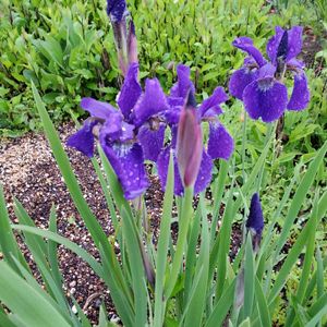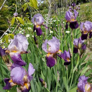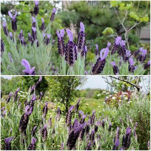フレンチラベンダー 上は庭 下はナチュラルガーデン のものです。 一斉に咲き始めてます。 毎年花後きりもどしますが挿し木して増やしたものだから一斉開花もうなずけます。