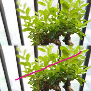 以前、エゴノキというタグを付けてアップしていた樹を弄りました。 まず、葉の形から見てもどう見てもエゴノキには見えず、イボタにしか見えないので、今後はイボタということでいきます😓 左がビフォーですが、二股に分かれるところがカエル股に見えるのがイマイチだなぁと感じていました。そこで根張りの様子を見つつ、右に少し倒して植え付けて、かつ右枝を下げて、左枝を右に寄せました。つまり、吹き流し樹形にプチ改作、というわけです。 鉢は忍山という落款でしたが、忍庵さんのセカンドブランド?もしくはパクリでしょうか?作りが薄くて色合いもよく、気に入っています。