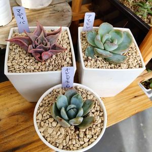 先日のマディバ、☆になってしまいました💦大丈夫そうな葉を葉挿し挑戦中。 気を取り直してまたまたメル狩りでお迎えのゴーストリー、星影、ツインベリー💓可愛くなることを願って…😊