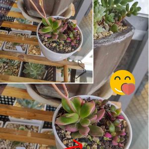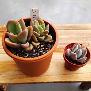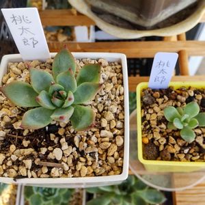 桃太郎の親子🍑 小柄なお母さんだけど… 購入して植え替える時にダメ元で取った葉挿し(3/30) 4ヶ月程経ち、可愛く元気に育ってくれているので鉢上げしました🍀 このまま順調に育ってネ💓