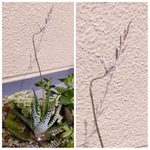 花芽を発見してから約1ヶ月📆ハオルチア十二の巻🌱 やっと可愛い花が咲きました💓