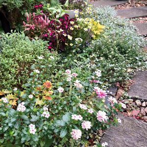 うちの小さな庭 カラーリーフ(コリウス)が思った以上に育ってポイントになりました。 このコリウス、切って水に入れておけば発根して強い子です。