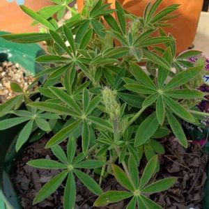 今年買った宿根ルピナスのピクシーデライト。 夏越し成功させるため、スリット鉢にしました❗ 一番花が終わりだったから今朝花がらを摘みました。 蕾がまだ7つも控えてるので開花が楽しみです😊