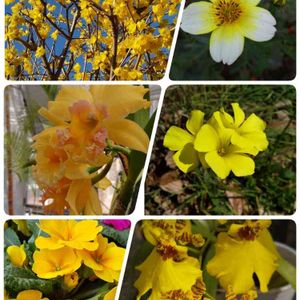 イエローマジックに参加します。 コロナに負けるな! 黄色い花で応援させて頂きます。🍀 過去のpicになります。 🌸左上、狼狽 🌸右上 、ウインターコスモス 🌸左中心、カトレア🌸右中心,オキザリス 🌸左下、ジュリアン🌸右下、オンシジウム ダンスをしている女性ー 別名、ダンシングドール 素敵な名前ですね🍀🧡