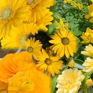こんばんは😊 元気が出る黄色のお花をお花屋さんで集めておきました💕 部員外ですが、キュンキュン乙女倶楽部さんのイエローマジックに参加します‼️ どうぞ皆さんに笑顔が戻る日が近づきますように祈っております🙏