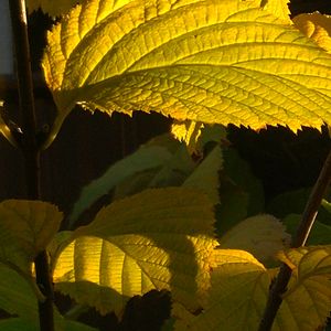 夕日を浴びて、黄色に紅葉した白山吹の葉が輝きました。 🏷グリーンアクセサリー♪