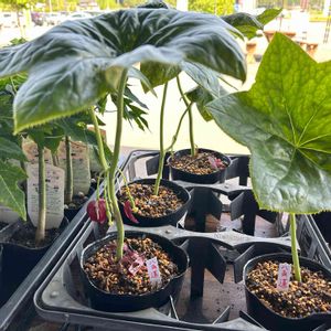 立ち寄った🚙栃木県の道の駅 サシバの里いちかい 野菜苗の並びに八角連の苗が🫢 希少な山野草だと思っていたので、こんな風に普通に売っているとは👛 驚きでした。 ちなみに隣はパパイヤの苗です🌱