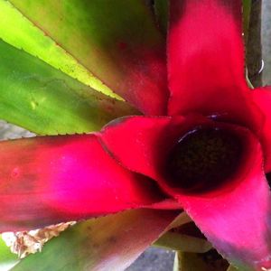 今日のお花〜✨ これってグズマニアで良いんでしたっけ?😅 蛍光レッドとも言えそうな素晴らしい発色でした。 @夜越山