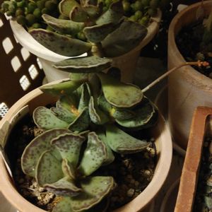 冬型だけど、移動が面倒で最近室内生活の天錦章。 先週も投稿したような記憶があるが、その時よりも成長していそうだから登場していただく。 横から出てくるのは新たな葉というより枝になっていくのかなと楽しみにしている。 葉が取れやすいタイプの多肉だと思うけど、葉が取れた箇所からこうして新しい葉が出てくるので再生能力というのか分からないが、逞しさを感じる。