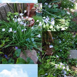 バイモユリのあとに顔をだしたのは イフェイオン(ハナニラ) 🗣️通り過ぎないで私たちも写真を撮ってよと ハイチーズ🤳 顔を上げてくれてありがとう🤗