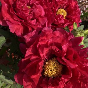 (母No.49)父が‥元気なうちにどぉしても見たい‼️と購入した赤と白の牡丹💕父の想いを叶えてくれて燃えるような真っ赤な色とゴージャスな牡丹の花姿に感激です(涙) ちなみに白はまだ蕾です‥😉楽しみ〜✨