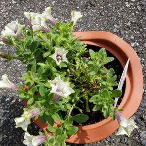植え替えた😊 ペチュニア 紫小紋を植え替えた☺️ちょこっとづつ鉢を大きくすのが、大きく育てるポイントだと聞いたので、実践したぞ😆🙌