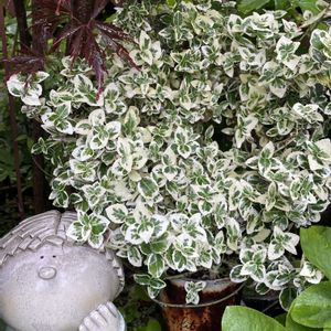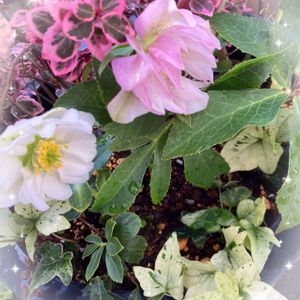 クリローさんの開花チビ苗お迎えしました🥀✨ 北風が冷たかったけど頑張って寄せ植えに♬✨ 後ろのピンクのリーフはツルマサキ🩷 手前の白いアイビーは白雪姫👸 やっと出会えて嬉しい☺️