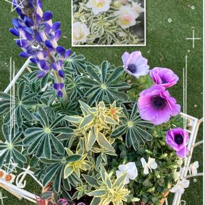 今日は暖かい恵みの雨☔️ 先日作った寄せ植えです🪴 宿根ルピナス(傘葉ルピナス) アネモネ・フルゲンス 斑入りキンギョソウ 白いビオラ・ディージェー ピンクのリーフはツルマサキ🩷 斑入りのキンギョソウに小さなツボミが見えてます🌸 淡いピンクの八重咲きが咲くらしいので楽しみ〜♬ 白いビオラちゃんもっと頑張れ〜٩(*´ ꒳ `*)۶