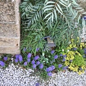🪻🪻🪻🪻🪻🪻🌿 アジュガの咲く庭の風景 🤗💫 地植えスペース&花壇 毎年良く増えますが間引いて 程良い感じ?🤔にしてます ①②玄関横の小さな内庭/シェードガーデン ③車道側の小さな植栽スペース ④花壇の一部