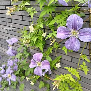 玄関前の壁にツル植物を𓂃 𓈒𓏸◌ ジャスミナム”クロテッド·クリーム" クレマチス "エミリアプラター” ジャスミン との コラボ予定 は 本当は テッセンのつもり だった😅 ちょっと色合いがボヤけるけど エミリア も悪くないか😊🫶 夏にはジャスミンは終わってしまうから ウッドデッキの方からテッセンを追加しよ☺️♪