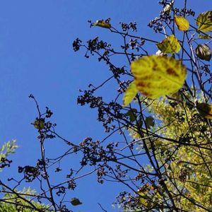 1、2 ケンポナシ(玄圃梨) クロウメモドキ科ケンポナシ属落葉高木 花期6〜7月 在来種 1枚目の梢に茶色く見えるのが果実です。2枚目は持ち帰り写した物。先っぽの丸いのが1㌢位の果実、その下にある果実を支える軸の部分が食べると梨のような部分です。 ケンポナシは枝ごと地面にたくさん落ちていました。 ケンポナシは、あの分類学の父と呼ばれるカール・フォン・リンネの弟子で、鎖国中の日本に来て植物調査したカール・ピーター・ツンベルクが学名を付けたそうです。日本他、東アジアの固有種です。 (サカタのタネ園芸通信東アジア植物記ケンポナシより抜粋引用しています) 3、4 ヌルデ(白膠木)の果実 ウルシ科ヌルデ属落葉小高木 在来種 ウルシ科でもかぶれることは少ないらしい。葉にできる虫癭が薬用、主な成分はタンニン 5 ツルマサキ(蔓柾木) 先日の松輪海岸付近ではオオバツルマサキを見ましたが(11/22投稿)これはツルマサキです。見え辛いですが蔓が見えています。