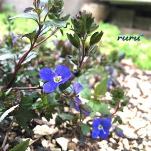あ、挿し芽っ子のベロニカオックスフォードブルーさんが咲いてる〜春だね☺️