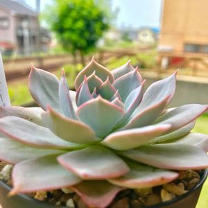 こちらも植え替え待ちの多肉✨ローラちゃん✨🌵✨ ちょっとくすんだ緑色だけど真ん中あたりがピンクに染まってきたよ💕💕 頑張って夏を乗り切ってね〜☺️☺️ 願わくば…先輩ローラちゃんの様に傾き大王にならないで(>人<;)💦