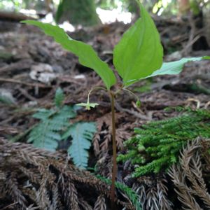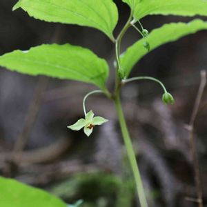 5/4に咲いていた花 シコクナベワリ(ビャクブ科) 葉っぱの下に花を咲かせるので目立ちませんが、独特な可愛い花を咲かせます☺️ 愛媛・赤星山にて
