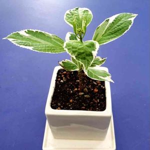 ふ入り紫陽花の挿し木を育てていたら蕾がついたので、3号鉢に植え替えてみました。 テーブルグリーンにちょうどいいサイズです。 咲くかな?