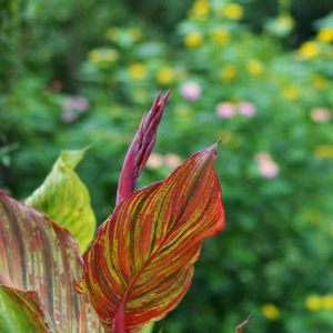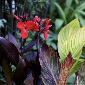 今年一番の期待株、楽しみに毎日眺めているカンナが真っ赤な花をつけました❣️❣️ 黒い葉っぱにこの赤、グッときますね〜🤗 黒葉 ブロンズスカーレット 赤の縞々 ダーバン 緑の縞々 ベンガルタイガー