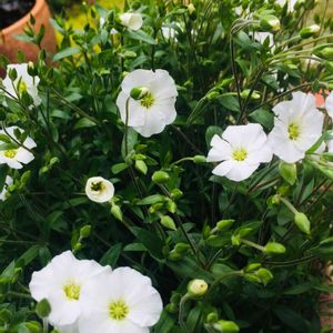 アレナリア モンタナ😽 少し前から 咲き出して ます💚🌿💚 宿根草ですが、この鉢 で もう何年も咲いて くれます。今年は 土替えしなかったので いまいちの咲きです😅