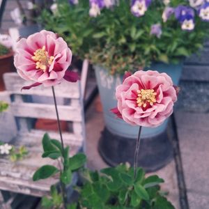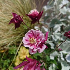 近所のスーパーで購入 西洋オダマキ 画像では分かりませんが かなり風🍃に揺れています 昨年の夏の終わりに植えて秋冬を越えて初めての開花🔰