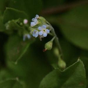 観察会で教えて頂いたミズタビラコ (水田平子)🩵 山地の渓流近くに生えていました🏞️ キュウリグサに似ていると思ったら同じムラサキ科キュウリグサ属でした キュウリグサの別名はタビラコで お花の中心部分は黄色でしたね🩵💛