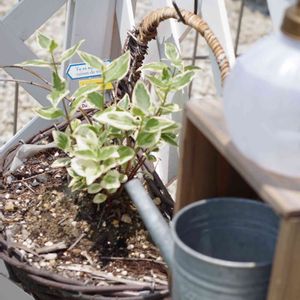 ハンギングのツルニチニチソウは、冬に北風にやられて一度ダメになりそうだったけど、春には見事新芽を出して、お花も咲かせて頑張りました♡ この場所は風が通り過ぎて難しい💦