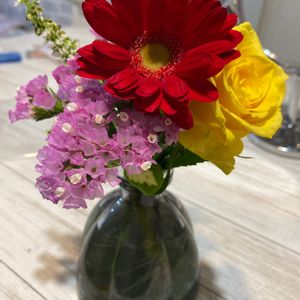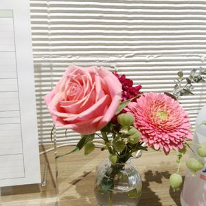medelさんのお花が我が家に届きました♪ greensnapさん、ステキな企画をありがとうございます😊 息子も一緒に封を開け、 かーわいー❤️とほっこりさせていただき、一緒にコップに生けてみました。 庭のパンジーもあとから追加してみたり。笑 お花がお家にあるって、優しい気持ちになりますね🌸 ここにぶつからないようにと言ってあるので、少しは暴れなくなるかな??笑
